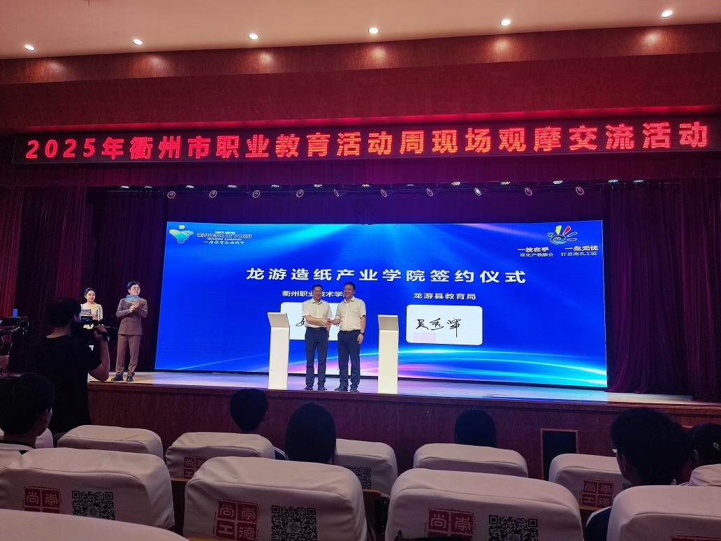 5月20日,衢州市职业教育活动周系列活动在龙游县隆重举行。校党委委员、副校长姚水洪率队参加。活动主会场,实施区域中高职一体化办学的AK体育客户端龙游学院揭牌成立。学校与龙游县人民政府签署了《共建龙游造纸产业学院战略合作协议》,标志着校地合作在产教融合领域迈出关键一步,为区域中高职一体化人才培养改革注入新动能。