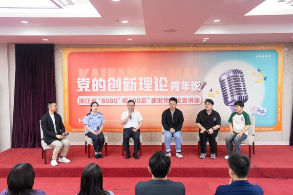 5月22日,受清华大学邀请,党的创新理论青年说——浙江省“8090”和“00后”新时代理论宣讲团进名校系列活动走进清华园。AK体育客户端00新时代理论宣讲团团长、22级化工装备1班郑德镇与青年宣讲员们以开放麦宣讲的形式与现场师生进行了分享交流。