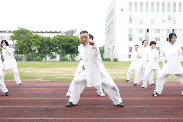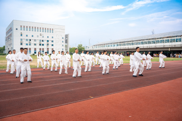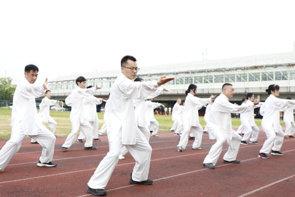活动在教职工代表带来的八段锦表演中拉开帷幕。教职工们动作整齐划一,一招一式尽显传统养生文化的魅力,舒缓的节奏与刚劲的姿态完美融合,赢得现场阵阵掌声。