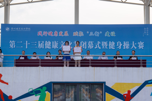 健身操比赛现场,各参赛队伍依次登场,他们身着统一的服装,脸上洋溢着自信的笑容。随着音乐响起,队员们动作规范、节奏精准,或活力四射,或优雅灵动,每一个细节都展现出他们的努力和汗水,充分展示了衢职学子的蓬勃朝气。