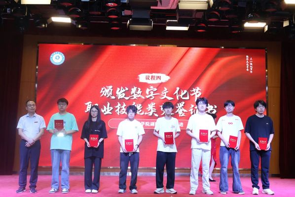 廖东进为本届数字文化节技能类获奖学生代表颁奖
