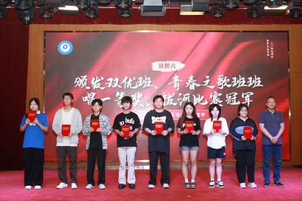 廖建平为2024-2025学年第一学期双优班班级、“青春之歌班班唱”一等奖班级与趣味运动会拔河比赛冠亚季军队伍学生代表颁奖