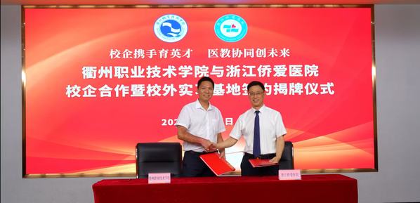 徐须实高度赞誉侨爱医院“生命至上”的核心价值观与发展战略,感谢廖志仁董事长及浙江侨爱团队对学校的信任,感谢市委统战部、市侨联、常山县对校企合作的大力支持。他表示,衢职院作为衢州唯一医学卫生类高职院校,承担着为衢州及周边地区培养医护大健康人才的重要使命,学校将以此次合作为契机,全力以赴推进浙江侨爱医院校外实习基地建设,打造“遵循职教规律、彰显医院特色”的实训体系。他强调,衢职院姓衢也姓常,服务常山经济社会发展是学校职责所在,学校今后将在人才培养、科研服务、艺术乡建、党建联建、社会培训等方面加强与常山县合作,助力常山经济社会高质量发展。