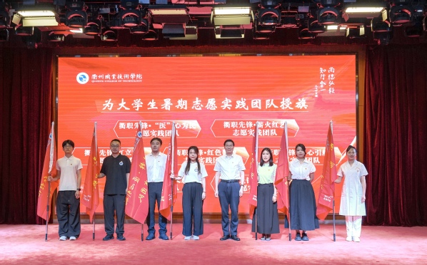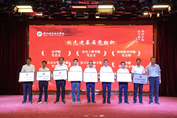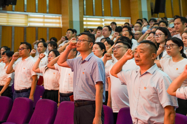 会上,徐须实带领新党员进行入党宣誓、老党员重温入党誓词,并为各二级学院暑期青年实践团授旗。