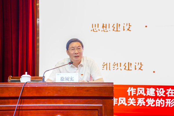 徐须实指出,马克思主义执政党人格力量集中体现为党的优良作风。中国共产党的作风建设,与党的政治建设、思想建设、组织建设、制度建设、纪律建设,共同构成党的建设总体布局。作风建设在党的建设中具有十分重要的地位,关系党的形象,关系人心向背,关系党的生死存亡。中央八项规定是改进作风的切入口和动员令,是党在新时代的徙木立信之举,以钉钉子精神纠治“四风” 是落实中央八项规定精神的核心任务,整治违规吃喝专项行动是当前学习教育工作的重要任务。