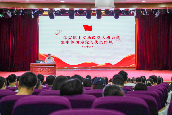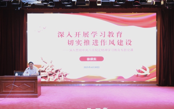 校党委书记徐须实以“深入开展学习教育 切实推进作风建设”为主题,围绕“马克思主义执政党人格力量集中体现为党的优良作风”“中央八项规定是改进作风的切入口、动员令”“以作风建设的新成效推动学校高质量发展”三个方面,以理论阐释与实践案例相结合的方式,为在场的师生党员带来了一堂精彩、生动、深刻的深入贯彻中央八项规定精神学习教育专题党课。