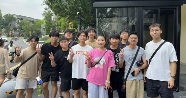 研学途中,开化根宫佛国的木雕艺术展现着中式美学的磅礴,常山梅树底的青山绿水勾勒出生态中国的画卷。更令大家惊喜的是,在游览衢州城区时,同学们偶遇了奥运冠军黄雅琼,热情交流后合影留念,这份意外的相遇让他们对这座城市多了一份鲜活记忆。这些体验让 “中国” 从抽象概念变成了可触可感的鲜活存在,茶香、竹韵、粽香交织成独特的记忆符号。