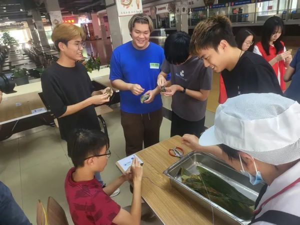 课堂之外,“文化浸润” 成为这段旅程的鲜明注脚。茶香袅袅的茶艺体验里,他们学会在一泡一饮中感受东方美学;竹编课堂上的指尖翻飞,让非遗技艺的巧思在掌心流转;非遗蛋雕体验中,细尖刻刀下渐渐浮现的精美纹样,让他们惊叹于方寸蛋壳里藏着的匠心传承;端午包粽子时的欢声笑语,让传统节日的温情有了具象表达;八段锦的一招一式里,他们在呼吸吐纳间触摸中医养生文化的智慧;艺术展览中,笔墨丹青与现代设计的碰撞,让他们看见中国文化在传承中迸发的创新活力。
