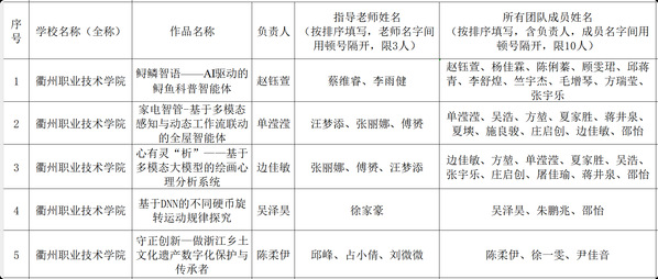 根据浙江省第十九届“挑战杯”大学生课外学术科技作品竞赛“人工智能+”专项赛工作要求,结合省赛推荐结果,现将拟推荐国赛作品进行公示。公示时间2025年7月27日-7月31日,共5天,联系电话:8068095,13575666559,13505707877。