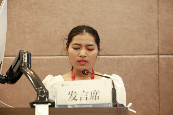 柬埔寨柴桢大学学生代表斯雷梅亚斯全程用中文作表态发言。