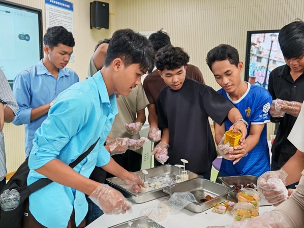 恰逢中秋佳节临近,对初来乍到的柬埔寨学子而言,这个象征团圆的节日,成为了他们感知中华传统文化温暖而美好的第一课。9月29日,一场别开生面的中秋主题活动在校园里温情上演。柬埔寨学子们第一次深入了解了中秋节的传说与习俗,更在食堂工作人员的指导下,亲手尝试制作冰皮月饼。从揉面、包馅到压模成型,每一个步骤都充满了新奇与乐趣。中外学子并肩协作,欢声笑语不断,在互动中迅速拉近了彼此的距离。来自柬埔寨的留学生PHAL SAMPHORS在活动中显得格外兴奋。她捧着自己制作的月饼,开心地分享道:“这是我第一次在中国过中秋节,月饼非常美味,中国的传统文化太有魅力了!我很喜欢AK体育客户端,这里的老师和同学都非常友好。我期待在这里学习先进的专业知识,也希望能更多了解中国的历史和文化,交到很多中国朋友。”简单的话语,流露出她对未来学习生活的无限向往与期待。