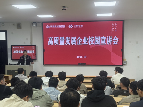 10月22日,华友新材料学院在阶梯教室举办“聚焦高质量,携手赢未来”高质量发展企业校园宣讲会。