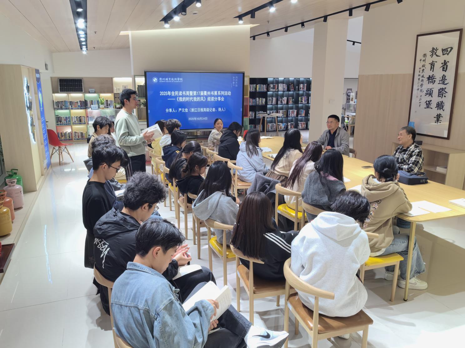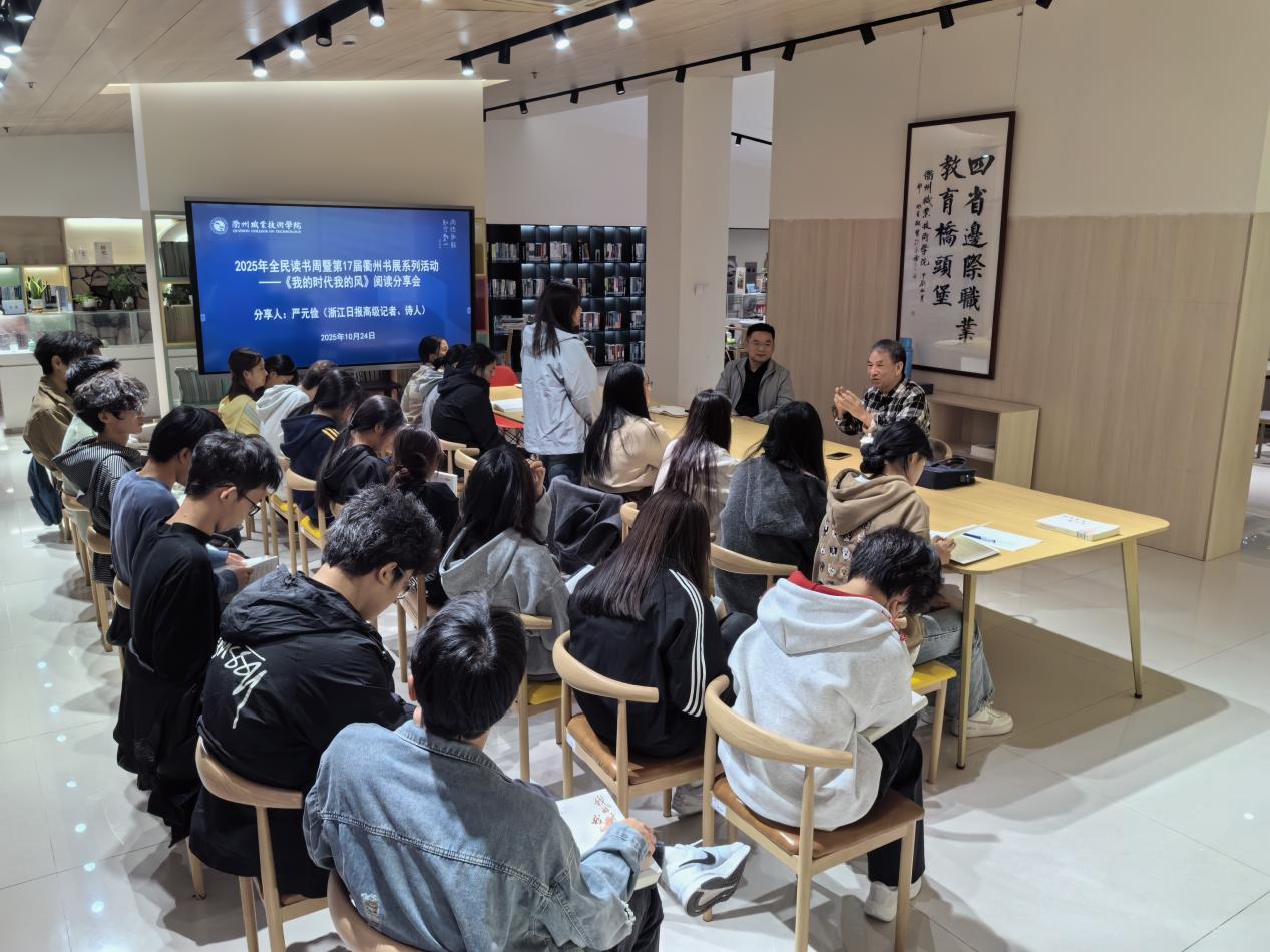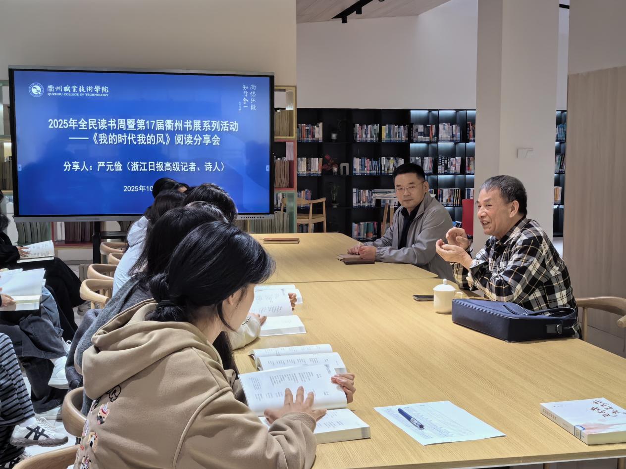 在2025年全民读书周暨第17届衢州书展的浓厚氛围中,10月24日,AK体育客户端图书馆特邀浙江日报高级记者、诗人严元俭,以其长篇“诗自传”《我的时代我的风》为载体,为师生带来一场兼具文学厚度与时代温度的阅读分享会,现场氛围热烈而动人。