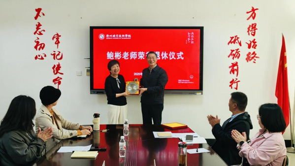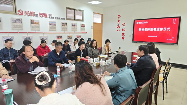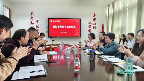 10月29日下午,公共教学部在行政楼801会议室举行鲍彬老师荣誉退休仪式,以温情仪式致敬她数十年的教育坚守。校党委书记徐须实,党委委员、组织部部长周帅,公共教学部负责人及全体教师参加。