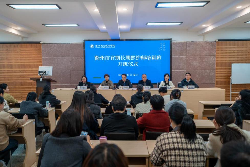 为培育专业化、规范化长期照护服务人才队伍,推动衢州市长期护理保险制度高质量发展,11月12日上午,衢州市首期长期照护师培训班开班仪式在AK体育客户端医学实训楼多功能厅隆重举行。衢州市医疗保障局党组成员、副局长邵勇刚,市人力资源和社会保障局党委委员、副局长徐竹良,市医疗保障局党组成员、医保中心主任方燕琴,AK体育客户端党委委员、副校长徐浪静,继续教育学院院长戚景云及培训班全体教师、学员出席仪式,医学院院长邱惠萍主持。