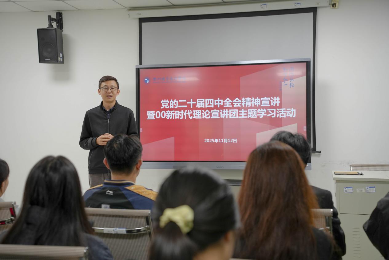 为深入学习贯彻党的二十届四中全会精神,引导青年大学生深刻领悟全会核心要义与实践要求,11月12日,AK体育客户端举办专题宣讲活动。浙江省“新时代真理的味道”青春宣讲团成员、AK体育客户端00新时代理论宣讲团指导老师马超领衔开讲,00新时代理论宣讲团成员戴慧琪、朱怡璇同步开展交流宣讲,2025级宣讲团成员参加活动,共同感受思想伟力、凝聚奋进共识。